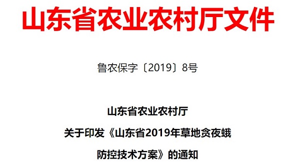 报道: 近日,山东省农业农村厅发布了关于印发《山东省2019年草地贪夜蛾防控技术方案》的通知,原文如下: