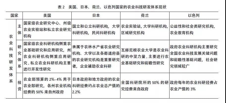 世界各国的农业科技研发系统组成主体多样化,但都基本以政府、高校的农业科技研发机构为重要主体,且政府为主要管理者、研发推动者,企业的重要程度各国略有不同,其他农业相关者紧密配合主要研发机构。
